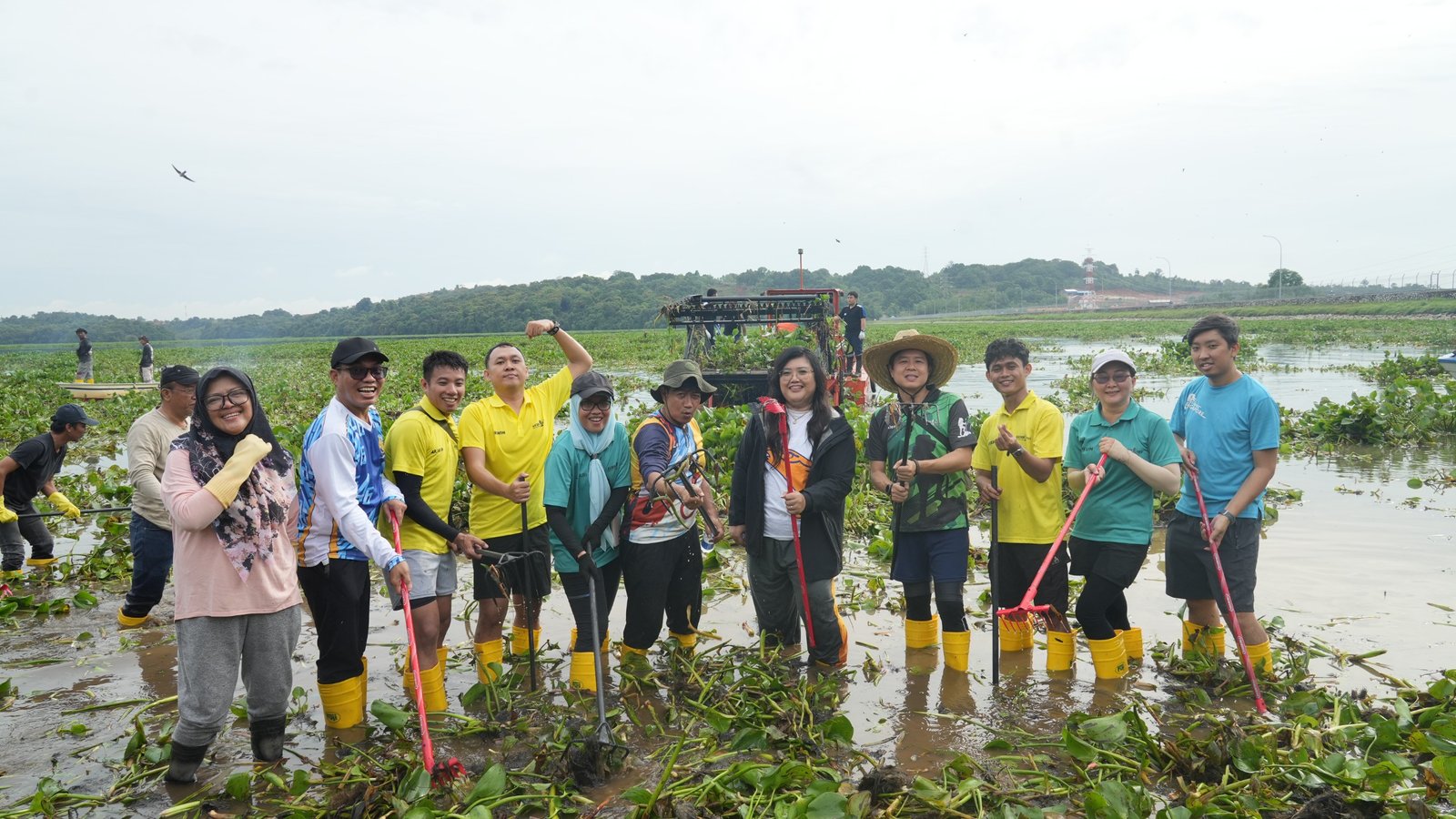 Sebanyak ratusan voluntir dari pecinta lingkungan, Komunitas Batam Hikers, Persatuan Masyarakat Nelayan Air Tawar Duriangkang dan karyawan Agung Toyota membersihkan eceng gondok yang memenuhi waduk.