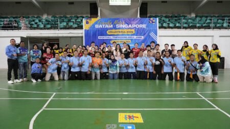 BATAM, MARITIMRAYA.COM (MARA) – ertandingan persahabatan bola voli putera dan puteri antara BP Batam, VTeam, dan UN-Collective Singapore resmi dibuka pada Sabtu (4/10/2025) di Sporthall Temenggung Abdul Jamal.
